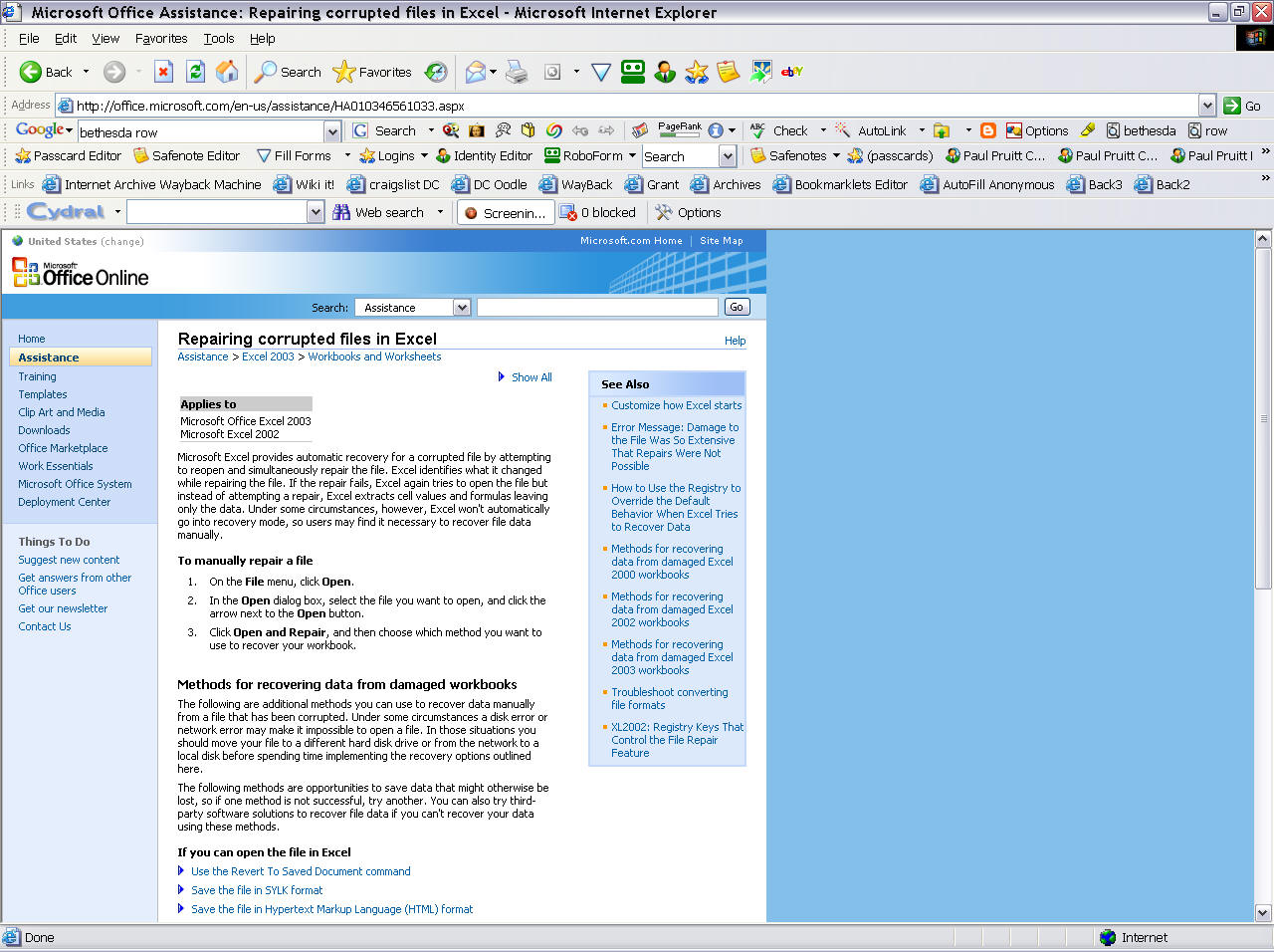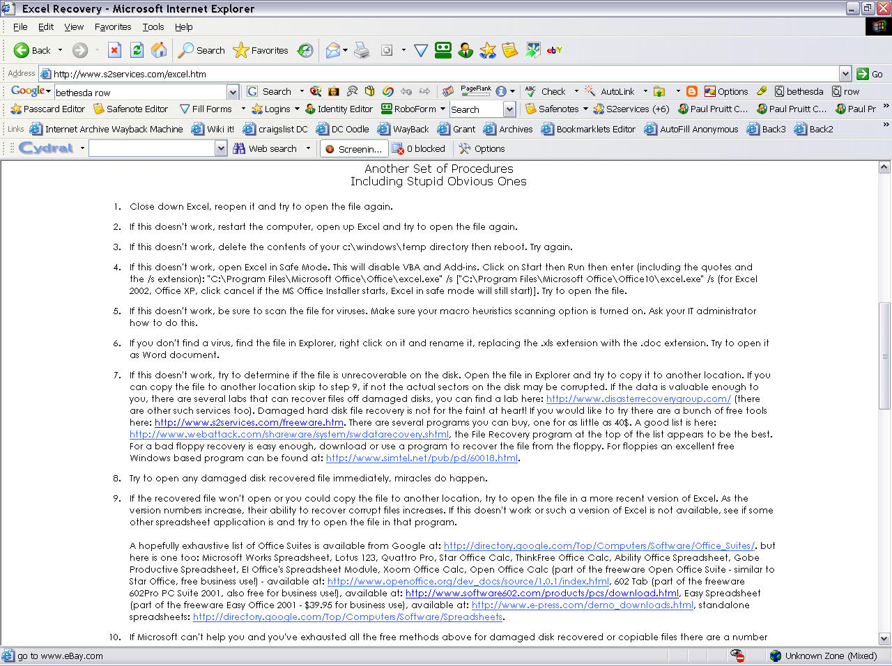 Download URL - My steps to recover an unopenable or corrupt Excel spreadsheet. Developer - Paul Pruitt OS - Windows File Size - Not Applicable (Online Guide) Supported Software Versions or File Systems - All Excel Versions Developer Provided Description - Comment - Scroll down past Microsoft's steps if you have already seen them by clicking above.