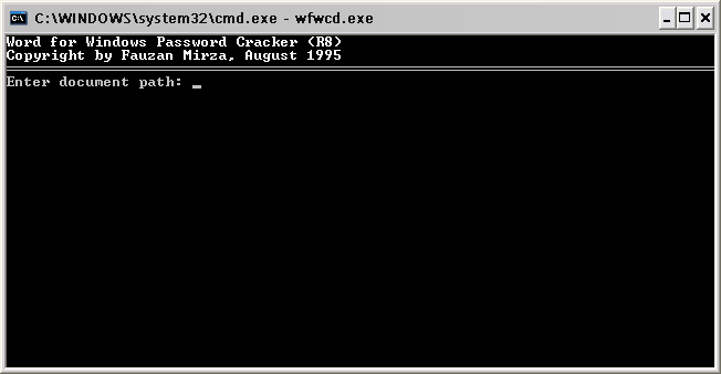 Download URL - wfwcd.zip - free version Developer - Fauzan Mirza OS - DOS/ Windows File Size - 19.8 KB Supported Software Versions or File Systems - MS Word for Windows 6.0 Developer Provided Description - "This program attempts to recover the password for Word for Windows encrypted documents." Comment - Old version of Word only. Written in 1996.