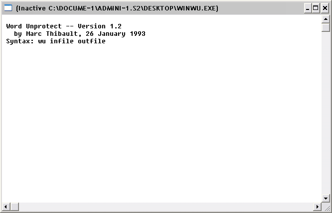 Download URL - http://www.password-crackers.com/DOWNLOAD/guawrd09.zip Developer - Pavel Semjanov OS - DOS (DPMI-host needed), Windows 95/98/2000/NT and Linux File Size - 80 KB Supported Software Versions or File Systems - Word 97/2000 (and Word XP in default, 40-bit mode) Developer Provided Description - "All known Word 97/2000 password crackers are testing passwords (using brute-force or dictionary attacks) to find the right one. This method is good only for short and non-complex passwords. For example, the fastest program gives about 170.000 password/second on Pentium III/800. To find 8-character password consisting of lowercase Latin letters and digits you'll need about 200 days. What if password is longer or consists of special characters or national symbols? (Un)fortunately, another method to decrypt files exists. Word 97/2000 (as well as Word XP in default mode) password protection uses strong enough encryption algorithm, but because of U.S. crypto export regulations key length is only 40 bits. So, you need to test only 240 keys (not passwords) to decrypt your file with guarantee. GuaWord does it, and key testing will take about 20 days only on the same Pentium III/800 PC. Within this time (and in average within the half of this time) ANY file, encrypted with ANY password (no matter what length of the password is or what language or symbols used, etc) can be decrypted. Moreover, GuaWord offers distributed computing mechanism (via the shared directory) and you should divide the necessary time to the quantity of PCs you've got." Comment - This can take like 25 days on an average machine, but is guaranteed to work, unlike a brute force cracker.