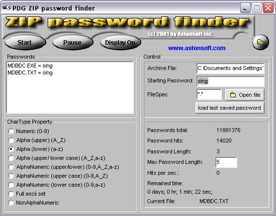 Name - AstonSoft Zip Password Finder